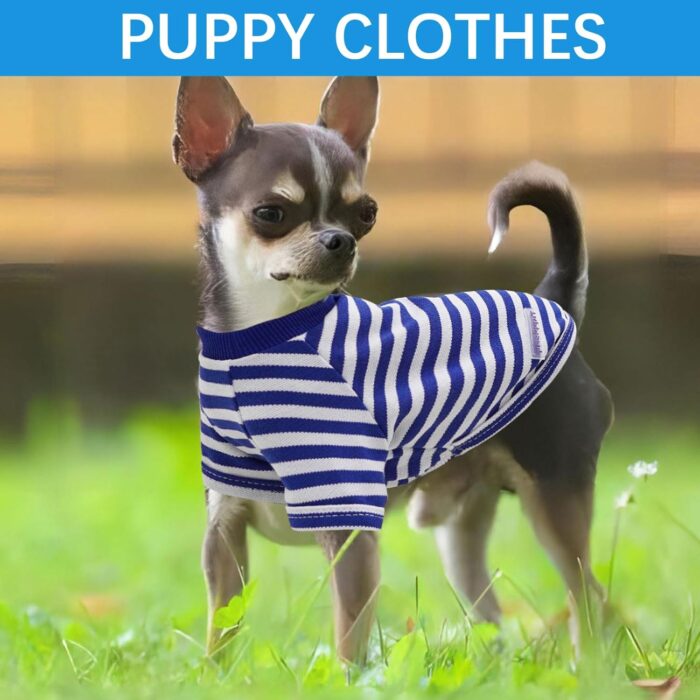 2 Pieces Stripe Dog Clothes for Small Dogs Summer Dog Shirt Cute Soft Puppy Clothes Bresthable Chihuahua Cat Clothes XS~XXL Pet Clothing (Small)