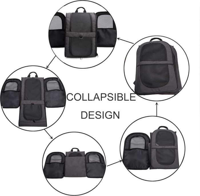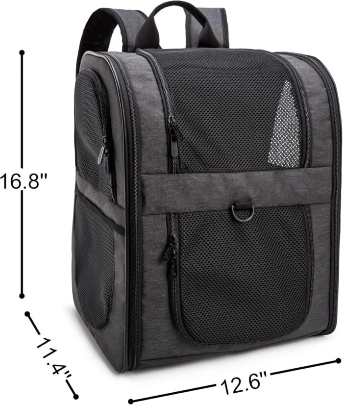 - LARGE SIZE-Designed for the maximum convenience and comfort for you and your pet while hiking, traveling, or taking your best friend to the vet, or going for a walk in the park. Measures approximately 11.4″ x 12.6″ x 16.8″ (L x W x H),larger than most competitors in the market.Easily fits medium cats&dogs,even large sized cats and other medium pets.