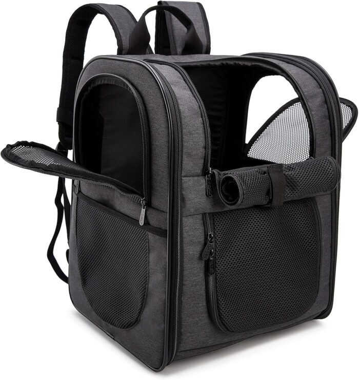 - ESCAPE PROOF- The last thing you want is an escaped pet running around the airplane cabin or outdoors. APOLLO WALKER pet backback carrier keeps your pet safe and secure while flying, walking, cycling, or hiking with claw-proof mesh and reinforced zippers. Carrier also has a leash tether to attach to your dog or cat’s collar if you decide to open the top window to let your pet stick their head out.