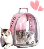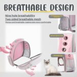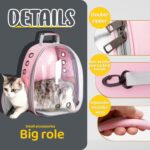 - [Intimate Design]: In order to be more safe and reliable this cat carrier is bubble backpack design, there are 9 ventilation holes to ensure that pets breathe fresh air, back and shoulder straps using the mesh material to make the cat backpack carrier to use up the ventilation is not stuffy, the side of the zipper openings designed to facilitate pets in and out of the interaction at any time, the bag is designed to have hooks to fix the pet leash, to prevent pets from escaping.