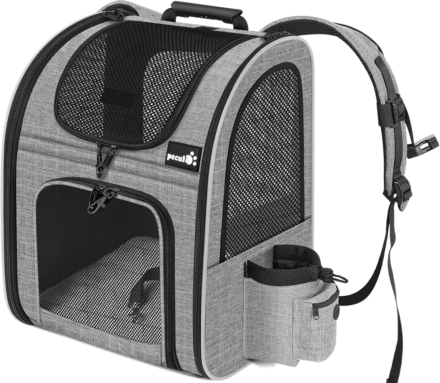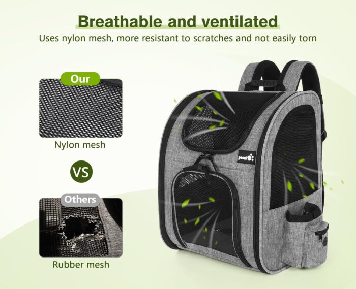 Pecute Cat Backpack with Breathable Mesh, Dog Backpack Carrier with Multi-Pockets, Cat Carrier Backpack Comfortable, Cat Backpack Carrier for Travel Hiking and Camping Gray