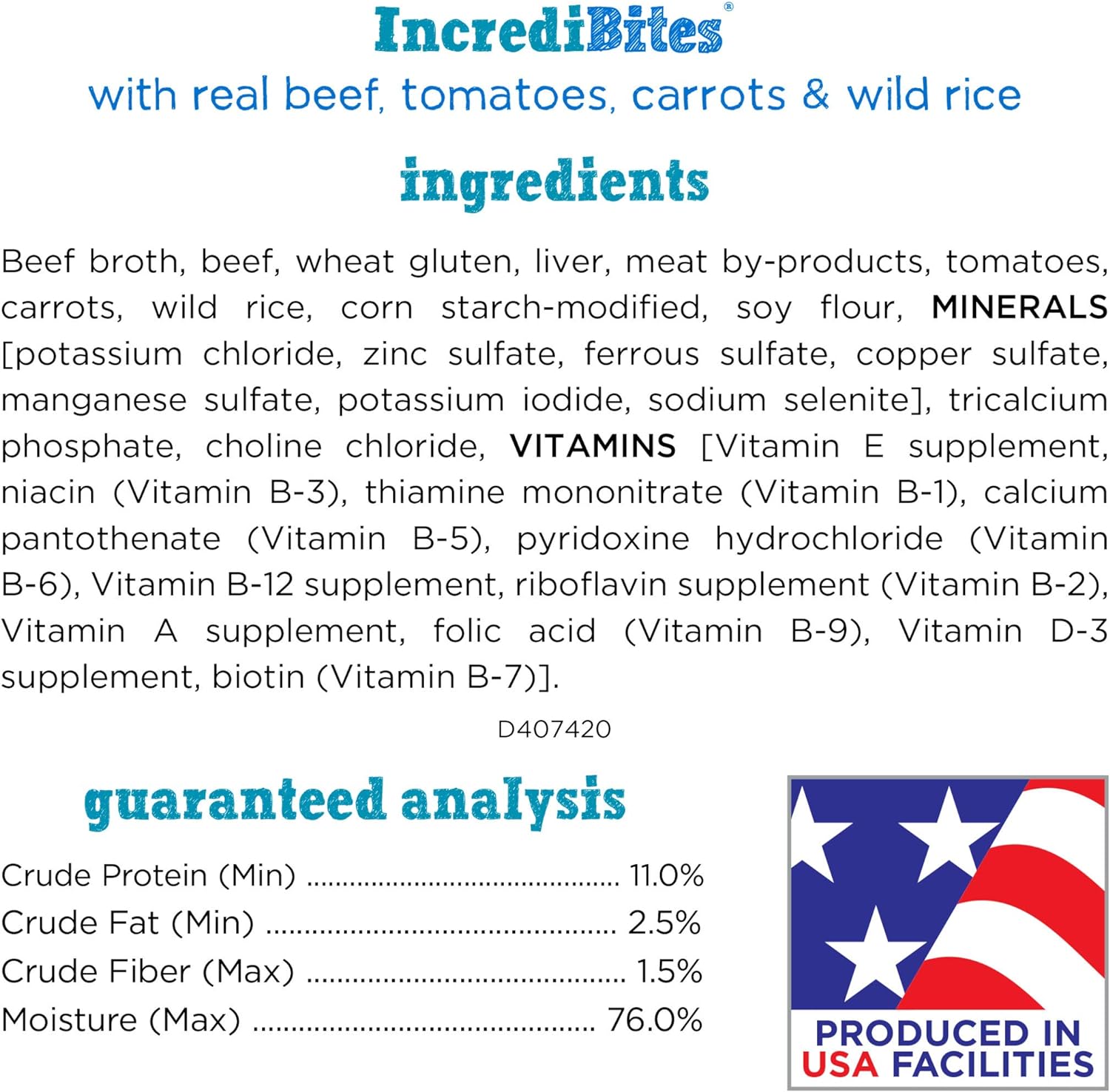- Purina Beneful IncrediBites is made specially for small dogs in 3 oz. cans and proudly produced in Purina-owned, U.S. facilities
