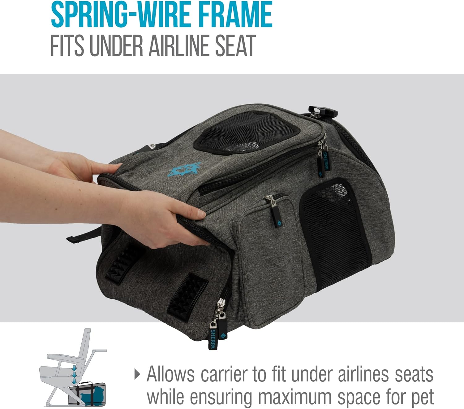 - IN-CABIN FRIENDLY: Designed to fit under most airplane seats in compliance with FAA regulations; also features mesh panels for ventilation, escape-proof locking zippers, waterproof interior base, and a removable machine washable cozy base liner